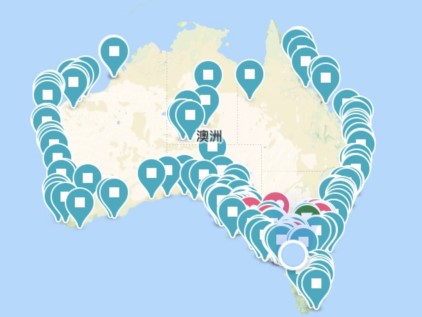 這是我目前的澳洲地圖,藍點的地方就是我所去過的,雖然還不是很完整,還有最後一段凱恩斯到布魯姆(Cairns to Broome)還沒有走,但也算是小有成就了!